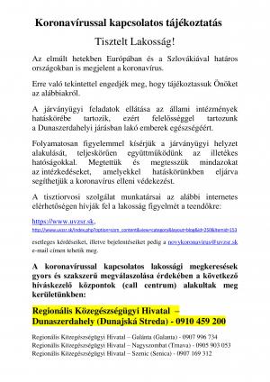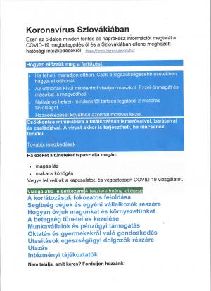 A Szlovák Köztársaság Közegészségügyi Hivatalának intézkedése a közegészségügyi vészhelyzet idejére