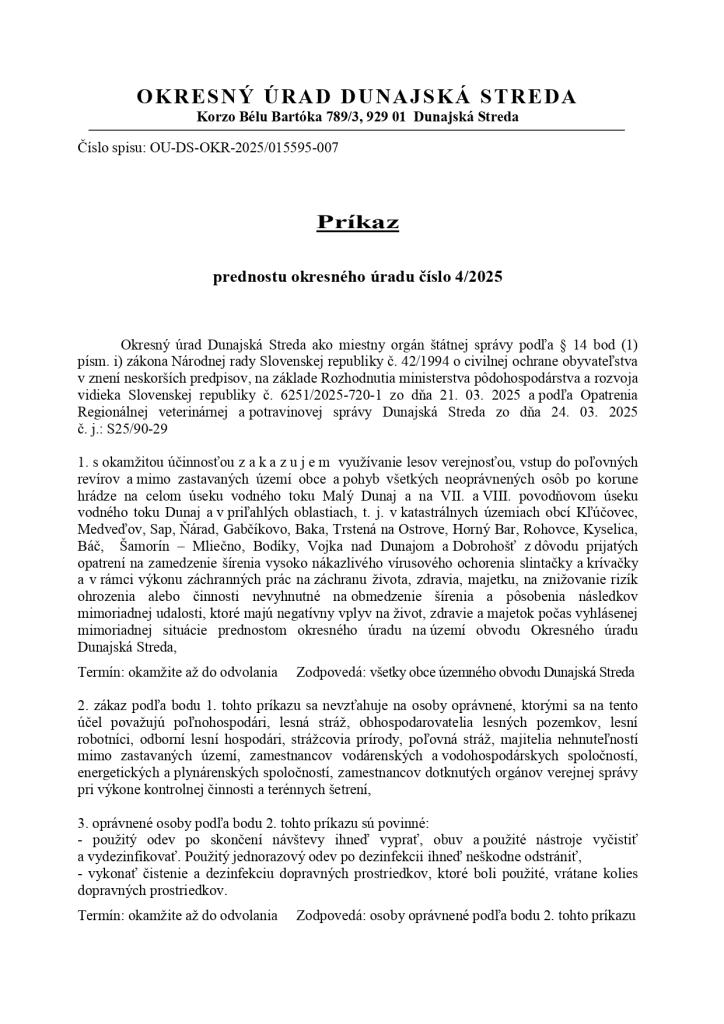 Príkaz prednostu okresného úrad č. 4/2025 1
